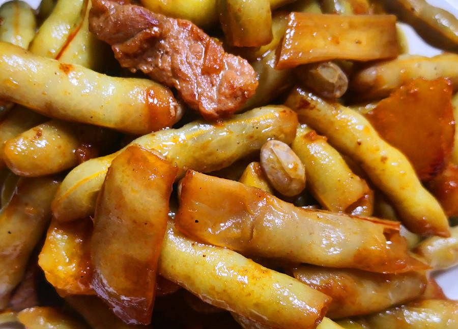 黄金钩油豆角的口感很独特,筋道较少,炖煮后软烂香糯,吃起来面面的、干香可口,豆香味浓郁,被誉为“开锅烂”,即烹饪过程中容易煮熟,但又不会煮烂成泥。用它和猪肉或排骨一起炖着吃,豆角能够充分吸收肉香,做好后香气扑鼻,好吃到停不下嘴!下面我就分享一个黄金钩豆角的好吃做法:
