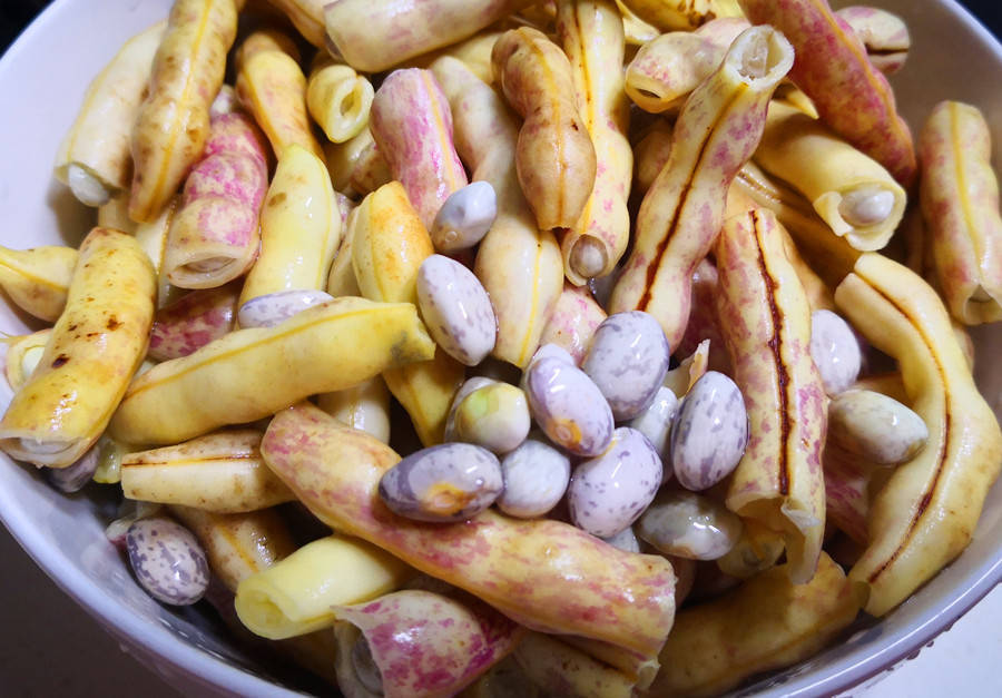黄金钩油豆角可以算是豆角中的极品,它的色泽金黄,形状弯曲如钩,因此得名。整根豆角的粗细均匀,子粒饱满,成熟后的豆荚上会带有红色的条纹,看起来很漂亮。